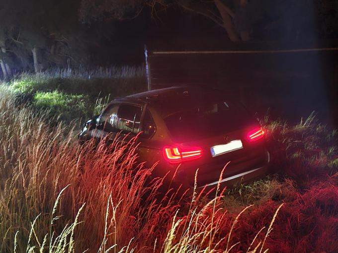 Langs de landelijke Bloemgatstraat, op de grens tussen Ardooie en Meulebeke, is donderdagnacht een BMW in een veld beland.