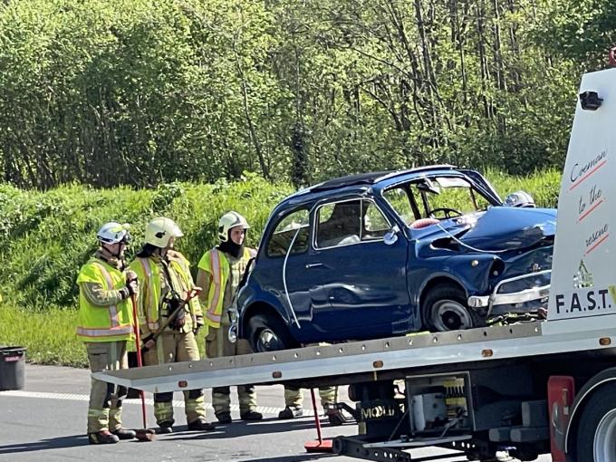 De brandweer werd opgeroepen voor een gekneld persoon in het voertuig, maar bij aankomst bleek de bestuurder al uit de wagen. De persoon werd overgebracht naar het ziekenhuis en de auto werd getakeld.
