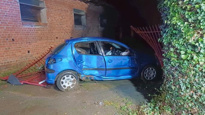 De auto reed eerst door een metalen hekken vooraleer tot stilstand te komen tegen de zijgevel van de schuur. Dat hekken heeft vermoedelijk de impact verkleind. De schuur zelf liep geen schade op. Tijdens de interventie was de Westouterstraat volledig afgesloten voor het verkeer. De politie van PZ Arro Ieper deed de vaststellingen. Daaruit bleek alvast dat de alcohol- en drugtest negatief was.