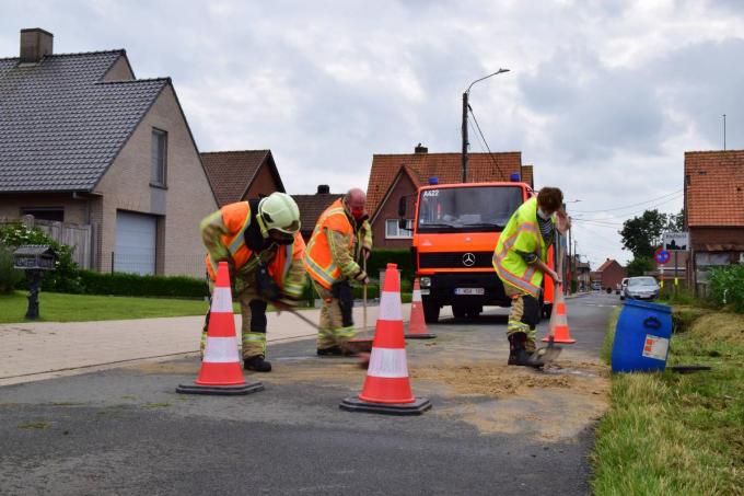 “In de straat was een tractor bezig om de graskanten te maaien”, zegt brandweerkapitein Lode De Keyser. “Wellicht heeft een van die tractoren op enkele plaatsen een hoeveelheid olie verloren. We werden opgeroepen om in te grijpen voor de situatie te gevaarlijk werd. Met ontvettende oplosmiddelen hebben we de olie kunnen bestrijden.” Tijdens de brandweerinterventie was de straat tijdelijk even afgesloten. De politie werd ook op de hoogte gebracht van de interventie. (JH)