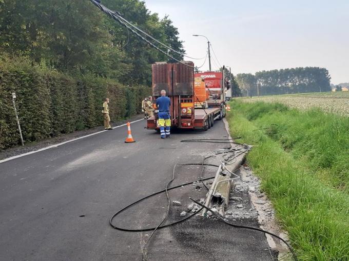De bestuurder kwam met de schrik vrij. De brandweer en Fluvius kwamen ter plaatse om het probleem op te lossen.