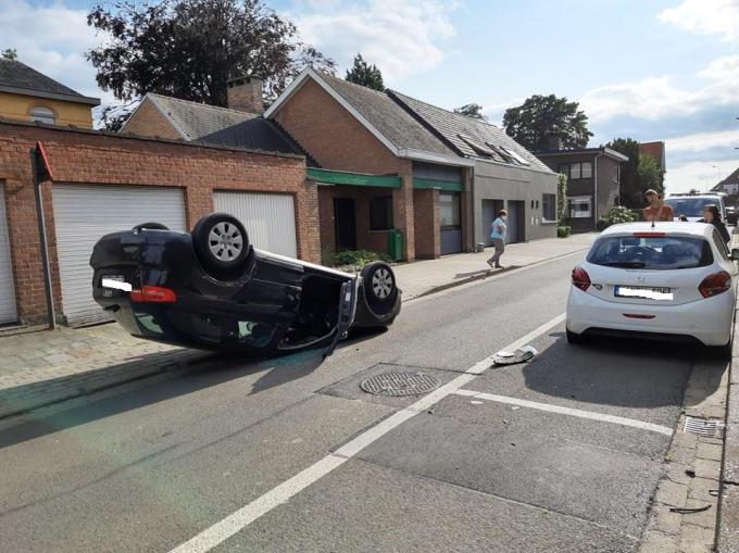 Een volwassen vrouw en een kind waren op weg met hun Audi toen het in het centrum van Aarsele verkeerd liep. De vrouw verloor de controle over het stuur van haar wagen en botste tegen een geparkeerde Peugeot. Haar wagen belandde in het midden van de weg op zijn dak.