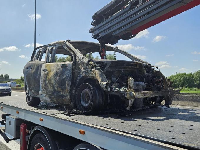 Door de hitte smolt een deel van het asfalt en vatte ook een deel van de berm vuur. De brandweer bluste grondig na om te voorkomen dat het droge gras opnieuw zou opflakkeren. Een takelwagen kwam de uitgebrande wagen later ophalen.