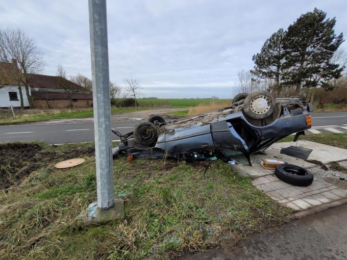De wagen belandde op zijn dak in de berm. Getuigen belden de hulpdiensten. Politie, ziekenwagen, mug en brandweer snelden ter plaatse. De brandweer was opgeroepen om de man, een 37-jarige Gistelnaar, te bevrijden uit zijn wagen.