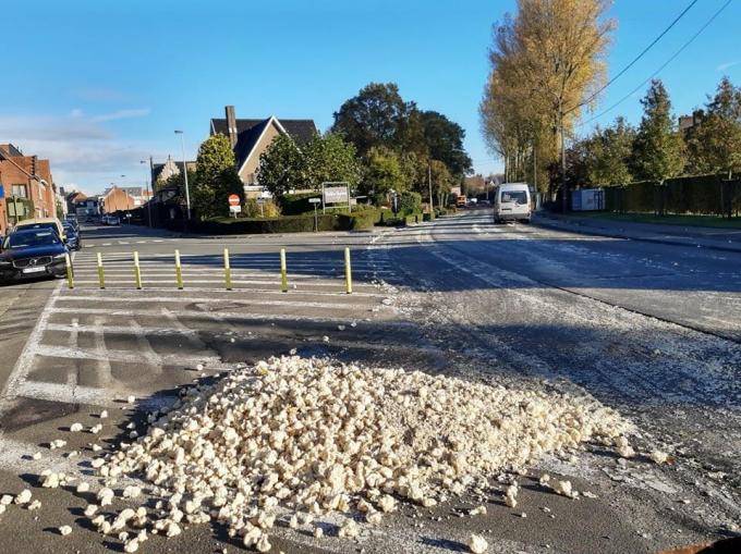 De Ardooisestraat kleurde dinsdagochtend wit. Net voor het binnenrijden van de bebouwde kom van Koolskamp verloor een landbouwer die op weg was met een grote hoeveelheid bloemkolen een deel van zijn lading.