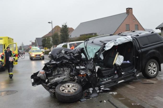 Het zware ongeval gebeurde maandag even voor de middag in de Heilig Sacramentstraat in Wingene. Een terreinwagen reed frontaal in op een vrachtwagen.