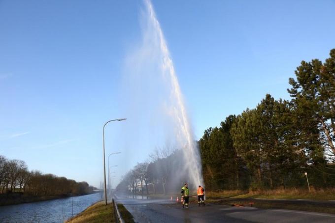 Onmiddelijk na de feiten konden de passerende wagens ‘genieten’ van een gratis douche. De waterleverancier probeert momenteel het water af te sluiten. Voor de omliggende bedrijven zou er geen probleem zijn, zij worden voorzien van water uit het omliggende.