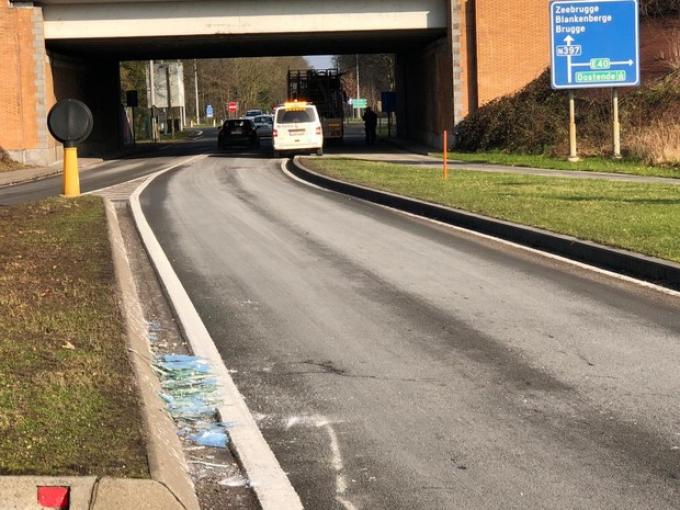 De vrachtwagen was geladen met een partij glas, dat op de weg terechtkwam. De chaufeur kon onder de brug onder de E40 stoppen. De brandweer kwam ter plaatse om het glas op te ruimen. De verkeershinder viel al bij al nog mee. Niemand raakte gewond.