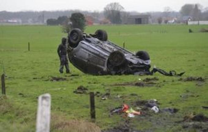 Op de E40 tussen Beernem en Oostkamp, in de richting van de kust, is vrijdagmiddag een wagen over de kop gegaan en in een weide naast de autosnelweg beland. Twee personen raakten daarbij zwaargewond. Eén slachtoffer werd afgevoerd met de mug-heli, een tweede met de ziekenwagen.