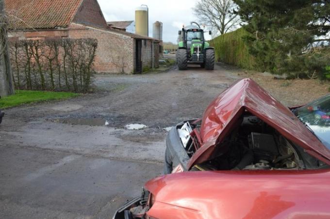 Rond 10 uur vrijdagvoormiddag is een wagen ingereden op een landbouwtractor die een manoeuvre deed langs de Tieltsteenweg op de grens van Wingene en Tielt.