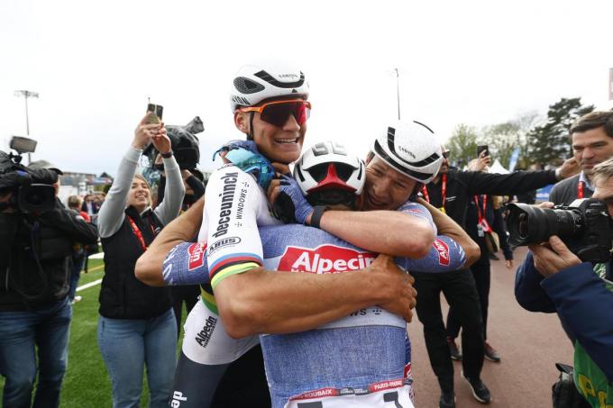 Gianni Vermeersch (6de in 2024): “De foto waarbij ik Jasper (Philipsen, red.) en Mathieu (Van der Poel, red.) vorig jaar op de piste in de armen val, is een van mijn mooiste momenten ooit. Ze hangt niet boven mijn bed, maar zal een mooie plek ergens in huis krijgen.”