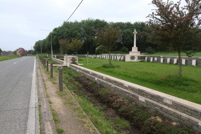 Heuvelland wil al lang een fietspad realiseren langs deze bij momenten vrij drukke gewestweg. De plannen zijn zo goed als kaar en de nodige gronden zijn verworven, maar toch kan het Vlaamse Agentschap Wegen en Verkeer (AVW) niet met de werken starten omdat er een probleempje opdook ter hoogte van het Engels oorlogskerkhof: voor de passage van dit fietspad zou de gracht voor de muur van dit kerkhof moeten worden ingebuisd, en daar kan Onroerend Erfgoed zich niet in vinden, omdat hiermee volgens hen het zicht zou worden ontnomen op de muur van dit beschermd monument.