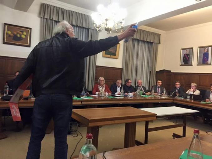 Dinsdagavond is de gemeenteraadszitting van Blankenberge verstoord geworden door activist Piet Wittevrongel.