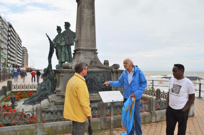 Het monument dient ter nagedachtenis van de Blankenbergse sergeant August Henri De Bruyne en zijn luitenant Jozef Lippens. “In de tekst op het infobord bij het standbeeld, staat dat zij in 1892 in Kongo Vrijstaat werden omgebracht door Arabische slavenhandelaars en er ‘sneuvelden voor de beschaving’. Pure geschiedenisvervalsing”, zegt Wittevrongel. “De twee waren het slachtoffer van de Arabische campagne van de toenmalige Congolese weermacht van Leopold II, waarbij het in feite ging om de controle over Oost-Kongo en de ivoorhandel aldaar. Niettegenstaande verschillende pogingen omeenbord met de juiste informatie te plaatsen, werd door het stadsbestuur van Blankenberge toch de verkeerde info aangebracht.”