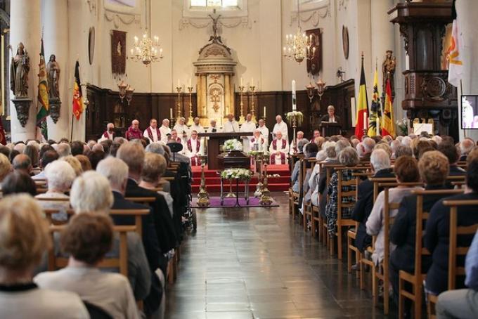 De prominenten kwamen samen aan bij het gemeentehuis. Net voor vertrek ondertekenden onder andere Siegfried Bracke (voorzitter van de Kamer van Volksvertegenwoordigers), gouverneur Carl Decaluwé en eregouverneur Paul Breyne nog het rouwregister in de hal van het gemeentehuis. Met voorop het brandweerkorps ging het met de prominenten in stoet naar de Sint-Amandskerk. Onder de aanwezigen in de stoet ook diverse burgemeesters en ereburgemeesters uit de regio. Tijdens de kerkdienst was de pastoor-hoofdcelebran Ludwig Dubaere, bijgestaan door diverse priesters, norbertijnen, deken Herman Lecluyse, prelaat Jos Wouters (abt van Averbode) en Jozef Bekaert (ceremoniaris). Het was al 11.15 uur toen de offerande van start ging.