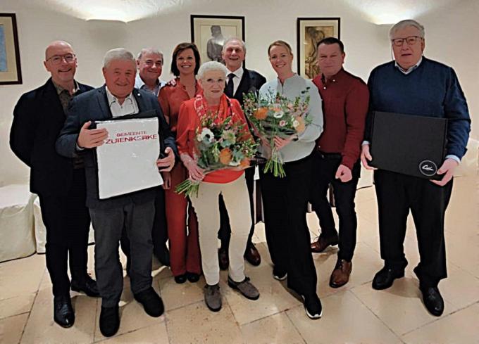 Ook Jacques Demeyere heeft een lange staat van dienst: hij zette zijn eerste stappen in de politiek in ‘95, in navolging van zijn vader Edmond die de laatste burgemeester was van Nieuwmunster. Jeannine Samijn, destijds de eerste vrouwelijke schepen in Zuienkerke, werd ook gelauwerd omwille van haar sterk sociaal engagement, onder meer als sociaal verpleegkundige bij Kind en Gezin. “Met je jarenlange inzet drukte je je stempel op het maatschappelijk leven in onze gemeente, en toonde je hoe diep je bekommernis was/is voor het welzijn van de mensen”, klonk het. Jeannine zetelde behalve als schepen ook als voorzitster in de OCMW-raad.