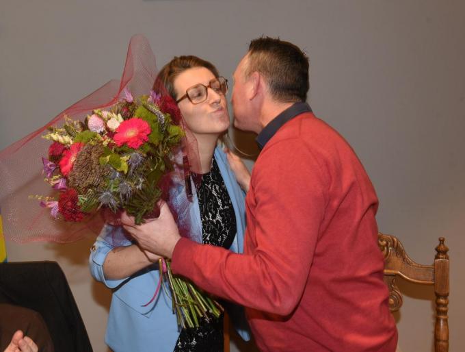 De jongste gemeenteraad begon met felicitaties. Veerle Depuydt, voorzitter van de gemeenteraad, feliciteerde burgemeester Kurt Windels met de officiële start van zijn derde ambtsperiode. Op vrijdag 31 januari volgde de eedaflegging in de handen van provinciegouverneur Carl Decaluwé en werd de burgemeester ambtsbevoegd. Veerle Depuydt zei dat ze nog een attentie hadden, waarna tweede schepen Liene Van Den Bosch een ruiker bloemen overhandigde. Na zijn aanstelling in januari 2012 en januari 2019 kreeg de burgervader niets, juist? “Dat klopt, ik denk het ook niet”, zegt burgemeester Windels. “Ik ben er blij en dankbaar voor. Het doet extra deugd dat het gedragen is door de hele gemeenteraad.” (Patrick D./foto FODI)