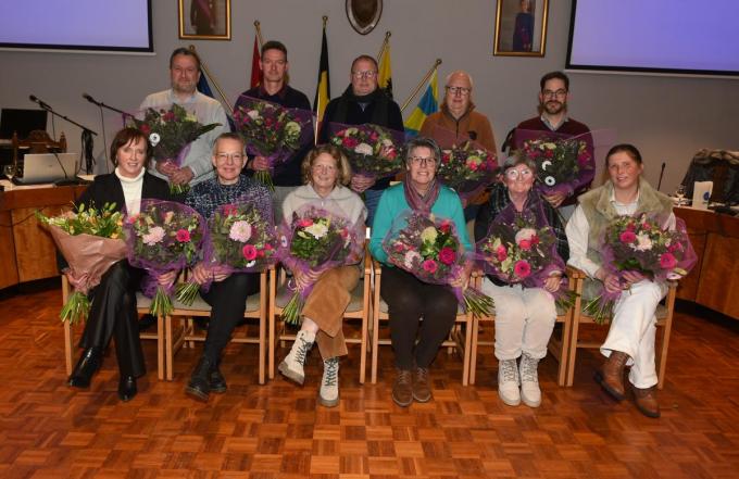 Op het einde somde hij de elf raadsleden op die er vanaf 3 december niet meer bij zijn wegens geen deelname meer aan de verkiezingen, wegens niet-herverkozen of wegens persoonlijke redenen en die dus zelf afscheid namen. Er waren bloemen voor de schepenen Nadine Verheye (N-VA) en Katrien Vandecasteele (Open VLD). Ook volgende raadsleden van de meerderheid De Brug/N-VA/Open VLD kregen bloemen: Diederik Vanderheeren (N-VA), Ann Vandevelde (De Brug), Rudy De Bruyne (De Brug), Carine Geldhof (De Brug) en Evy Becquart. Sabine Lampaert (CD&V) kreeg eveneens een bloemtuil net zoals Enigo Vandendriesssche en Kurt Soenens (beiden Vooruit). Er was ook een bloementuil voor Steven De Maesschalk (N-VA), die als voorzitter van de gemeenteraad eveneens ermee stopt wegens zijn drukke beroepsbezigheid. Burgemeester Kurt Windels bedankte eveneens iedereen en zei dat men vanaf 3 december met een nieuwe en vooral jonge ploeg van start gaat. Daarna werd er nog gezellig nagepraat.