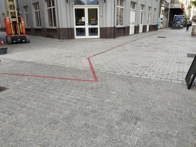 Schepen van Cultuur Felix De Clerck (TBSK) erkende het probleem. “Het Kunstenoverleg zou de rode lijnen midden augustus verwijderen, maar dat is niet gelukt. Er zijn enkele technische beperkingen. Voor de hogedrukreiniging moet de straat onder andere worden afgesloten, en dat bleek niet evident. We zijn op dit moment op zoek naar een andere oplossing.”