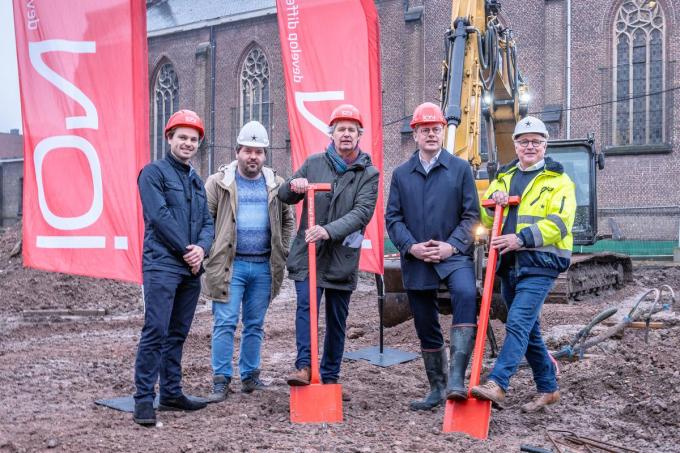 Kortrijks schepen van Stadsvernieuwing Wout Maddens (TBSK) heeft vanochtend symbolisch de eerste spade in de grond gestoken van het nieuwe woonproject ‘Plein Publiek’. Hij deed dat samen met Kristof Vanfleteren, CEO van projectontwikkelaar ION. Met ‘Plein Publiek’ schakelt de heropwaardering van de noord-zuidas in Kortrijk opnieuw een flinke versnelling hoger. ‘Plein Publiek’ wordt een mix van 52 duurzame appartementen, 54 studentenkamers en vier handelspanden. Tussen de gebouwen en de Sint-Rochuskerk komt een gloednieuw plein. De eerste bewoners worden begin 2027 verwacht.