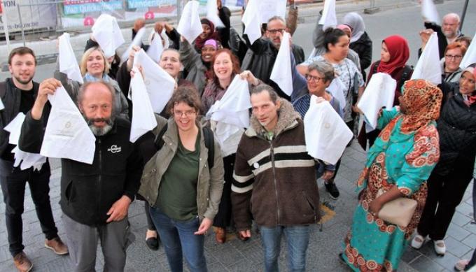 Mensen in armoede overhandigden op de laatste gemeenteraad voor de verkiezingen aan alle politici een zakdoek. Met het verzoek om er een knoop in te leggen. Op die manier krijgen zij een geheugensteuntje dat de strijd tegen armoede een beleidsprioriteit moet blijven.