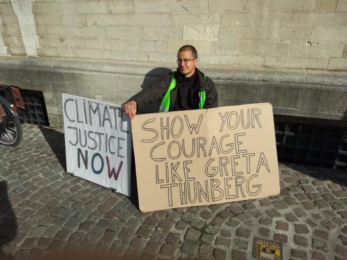 De Koolkerkse klimaatactivist Wouter Mouton had een kartonnen bord mee om te waarschuwen voor de klimaatopwarming. De voorbije zes weken vatte hij post in het Brusselse Warandepark, vlakbij het federaal parlement. Dinsdagavond wou hij de Brguse gemeenteraadsleden nogmaals attenderen op deze problematiek.