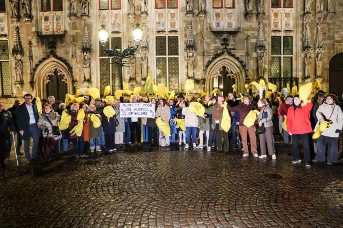 Gewezen copywriter en videomaker Eddy Kindermans (66) uit Christus Koning betoogde in naam van de 1.000 incontinente Bruggelingen en zwaaide met een pamper: “Dat thema is voor velen taboe, ik wil dat doorbreken. Ik ben er niet beschaamd over. Twee kankers hebben ervoor gezorgd dat ik incontinent ben. De gratis huisvuilzakken voor mensen met een medisch probleem zijn opgeschort.”