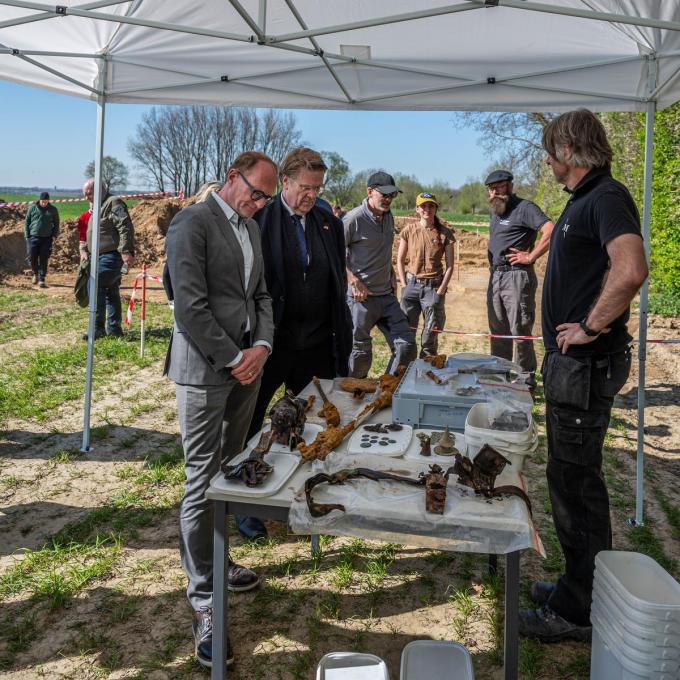 Vlaams minister van Onroerend Erfgoed Ben Weyts bracht op 7 april al een discreet bezoek aan de archeologische site in Ieper, waar de opgravingen op dat moment volop aan de gang waren. Deze discretie was nodig zodat de archeologische site niet werd verstoord. Hij werd vergezeld door Duits ambassadeur Martin Kotthaus en burgemeester van Ieper Katrien Desomer. Ter plaatse kregen ze toelichting over de historische achtergrond van dit stukje frontlinie en het domein waarop de opgravingen plaatsvinden. Aansluitend brachten ze ook een bezoek aan de opgravingssite zelf.
