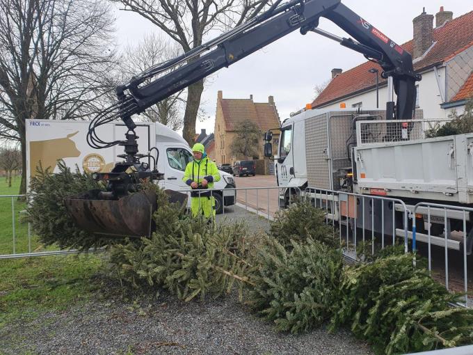 In Middelkerke zijn werknemers van de gemeentelijke diensten volop bezig met het plaatsen van kerstbomen.