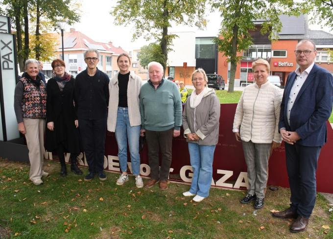 De installatie ‘Om Vrede voor Gaza’ blijft al zeker tot 11 november staan. Zaterdag vond het openingsmoment plaats met medewerking van woordkunstenaars Bart Cafmeyer en Stefaan Peene en muzikanten Sara Salverius en Jean-Philippe Poncin. “Poëzie, muziek en het voorlezen van namen zetten de boodschap van het kunstwerk kracht bij”, klinkt het.