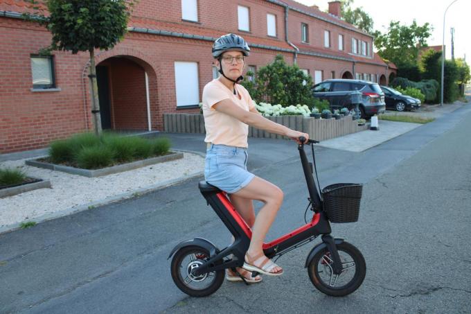 Vorige week woensdag werd Angelique op weg naar de kinesist echter staande gehouden bij een verkeerscontrole door de politiezone IDOW. “Hij haalde een rolmeter uit zijn zak en mat de hoogte van mijn zitje. Blijkbaar mag dat sinds de vernieuwde wetgeving in 2022 niet hoger dan 54 centimeter zijn of je moet het inschrijven als bromfiets klasse A. Om reglementair te zijn, zou ik 10 centimeter lager moeten zitten, maar dat is allesbehalve comfortabel of werkbaar. Bovendien zit de batterij onder het zadel en kan ik dus geen aanpassingen maken.”