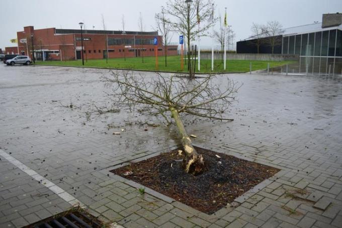 Op de grote parkeerplaats voor het OC De Leege Platse groeit momenteel een eigenaardige boom.
