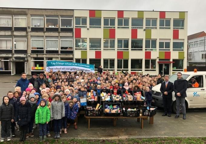 Hiermee helpen de kinderen de Oostkampse voedselbank bij de maandelijkse voedselbedeling. Dit kadert in het project welzijnszorg van de Sint-Pieterschool.