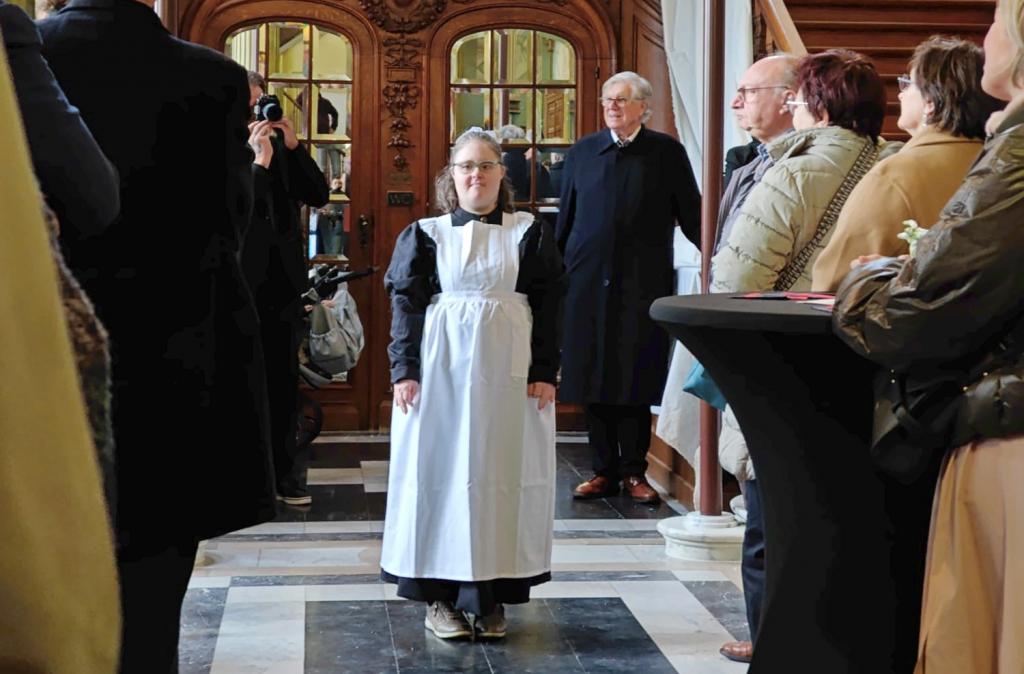 Tot enkele jaren geleden stond het kasteel grotendeels leeg. In 2022 zette De Lovie de eerste stappen naar een inclusieve kasteelwerking onder de naam Jules & Jolies: met de eetkamer, het theesalon en de geschenkenwinkel. “Ik woon ondertussen al drie jaar op het Kasteelpark De Lovie. Het kasteel is voor mij een heel belangrijk gebouw. Het is een superfijne plek om te werken. Ik help in de eetkamer van Jules & Jolies. Ik hou ervan om mensen te bedienen en ze goed te verwennen. Eens het kasteel gerestaureerd is, zal ik misschien kunnen helpen bij de logies. Het zal ook leuker zijn om gasten te ontvangen, want nu zijn er toch wel wat mankementen”, zegt Justine Vandererfven.
