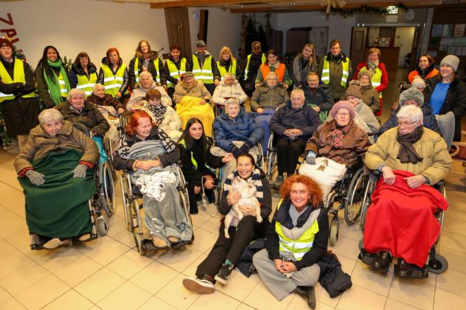 De kerst- en feestdagen zitten erop, maar her en der hangt nog heel wat sfeervolle verlichting. Reden te meer voor de bewoners van Sint-Monica om nog eens op stap te gaan. “Met 18 bewoners en hun familie maken we een mooie avondwandeling”, zegt mede-initiatiefnemer en nachtverpleegkundige Conny Vanborm. “De begeleidende personeelsleden doen dit ook vrijwillig en buiten hun uren. De voorbije tijd werd wel eens overdag een wandeling gemaakt, maar we willen de bewoners ook ’s avonds – bij het schitteren van de lichtjes – van de eindejaarssfeer laten proeven. Deze activiteit brengt bewoners, familie en medewerkers ook dichter bij elkaar.” (TVA/ foto PM)