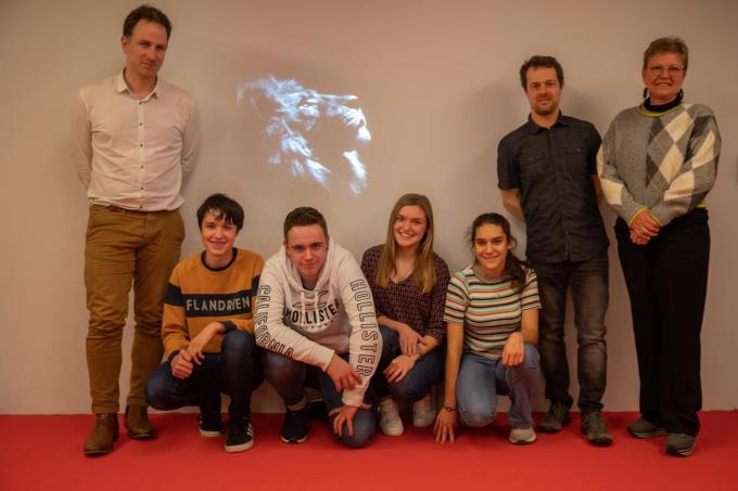 Het ging om zes pakkende getuigenissen over de impact van een kunstwerk op het leven van de verteller. Dit resulteerde in acht boeiende verhalen. Op maandag 17 februari werd het hele project voorgesteld in de bib van Tielt. In tegenstelling tot een boek kan de bib deze audioverhalen niet in een rek zetten. Daarom ontwikkelde het de website www.ikendekunst.be. Op de foto zien we van links naar rechts Tim Sautois, Mathijs Vandeberghe, Nate van Tatenhove, Natalia Kozlowska en Elise Van Assche, Tim Verstrynge en schepen Grietje Goossens. (foto WME)