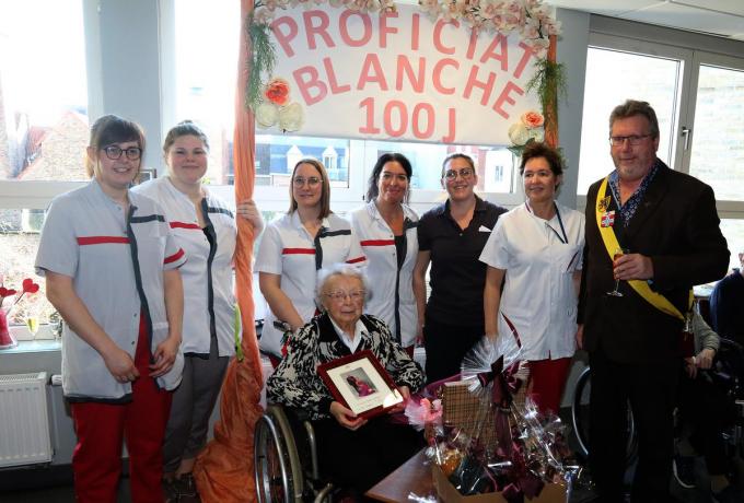 Zondag vierde Blanche De Plancke haar honderdste verjaardag met haar kinderen en familie. Een dag later werd ze in de bloemetjes gezet door de directie van woonzorgcentrum Huize Zonnelied, ze al een tweetal jaar verblijft.