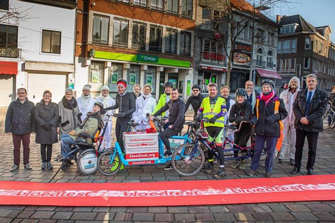 Het BloedtestFietsteam bestaande uit 5 mannen en vrouwen, met en zonder een beperking, fietste op zaterdag 30 november het 100 kilometer lange traject af met een rolstoeltandem, een gewone tandem en de BloedtestFiets.