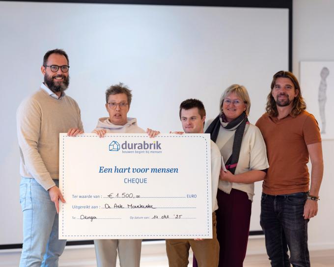 Bouwbedrijf Durabrik schenkt 1.500 euro aan De Ark Moerkerke