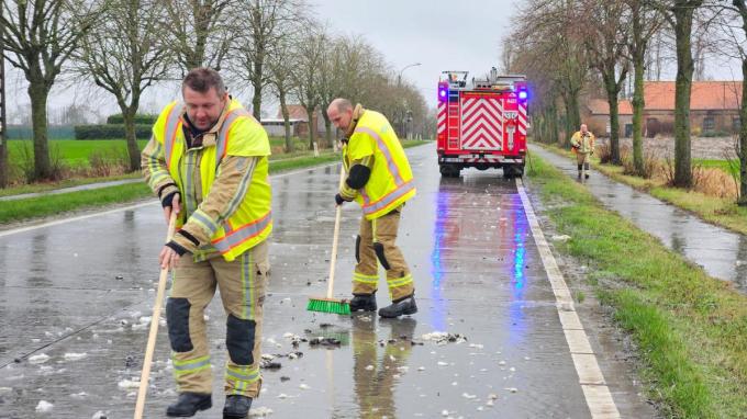 De brandweer van Houthulst-Merkem kreeg dinsdag rond het middaguur een melding binnen van een hoop aarde die op de Iepersteenweg in Merkem zou liggen. Na even zoeken werd geen aarde gevonden, maar wel een hoeveelheid plukken wol op de weg, in Boezinge.