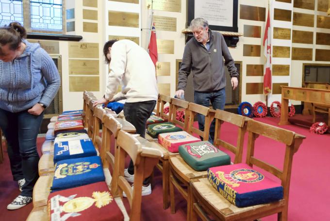In de Saint George’s Memorial Church zijn er meer dan 700 herdenkingsplaatjes te vinden, waarvan er 186 vastgemaakt zijn aan een stoel. Al die 186 naambordjes werden onder handen genomen. “Die bordjes zijn veelal bedoeld om gesneuvelde soldaten te herdenken”, gaat de vicar verder. “Vaak werden ze betaald door de familie van de militair, zodat die niet vergeten zou worden.” Sommige van de bordjes zijn al bijna een eeuw oud, als je weet dat de kerk werd gebouwd in 1928-1929.