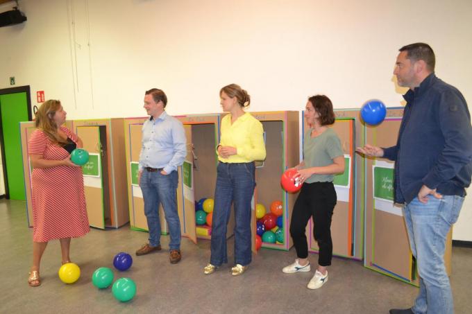 Bij de start van het schooljaar trok schepen van Sociale Zaken Louis Vanderbeken naar alle scholen met een grote verrassingsdoos. “Dit is een aandachtspunt voor kinderen, leerkrachten en ouders. Er steekt een houten spel en ballen in. Verder zijn er flyers voor alle leerlingen om de werking en het bestaan van de brugfiguur kenbaar te maken.”