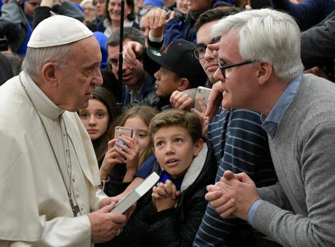 “Je hoeft niet gelovig te zijn om levenswijsheid uit de geschreven en gesproken woorden van paus Franciscus te halen. Sinds de coronacrisis maakt hij duidelijk dat heel wat angsten en onzekerheden overwonnen kunnen worden, als je vertrouwen en geloof hebt. Ik heb hem al vier keer kort kunnen spreken in het Vaticaan, telkens als ik hem een nieuw boek overhandigde. Hij is een minzaam man die goed kan luisteren. Zijn moedertaal is het Spaans. Behalve Italiaans spreekt hij nauwelijks andere vreemde talen. Wie met de paus wil spreken, moet wat Italiaans spreken of duidelijk en eenvoudig Frans.”