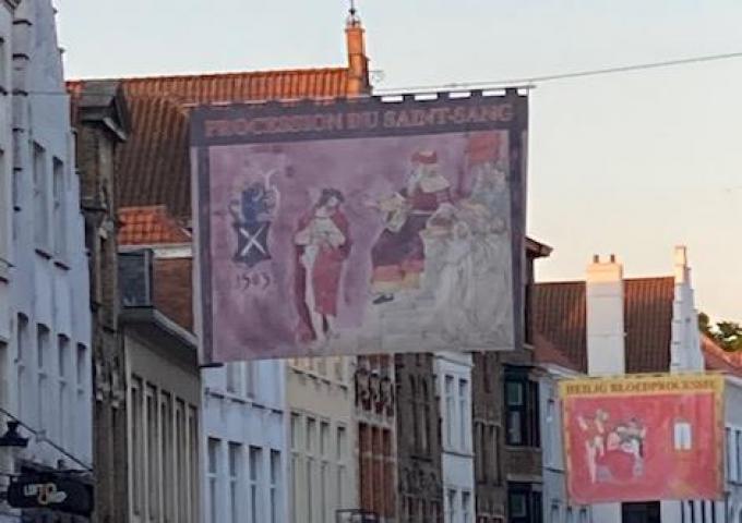 Het is een traditie dat de handelaars van de binnenstad, die al meer dan dertig jaar verenigd zijn binnen de vzw Brugs Handelscentrum (BHC) instaan voor de bevlagging van de winkelstraten naar aanleiding van de jaarlijkse Heilig Bloedprocessie.