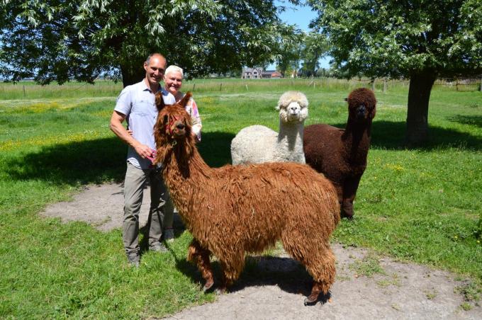 Luc Depoorter en Vera van Dooren zijn opgelucht nu Bruno, hun bruine Suri alpaca, veilig en wel weer thuis is. Drie dagen lang werd er in de Meetkerkse polders met man en macht gezocht naar het dier, dat woensdag op de loop ging toen het achterna werd gezeten door honden.