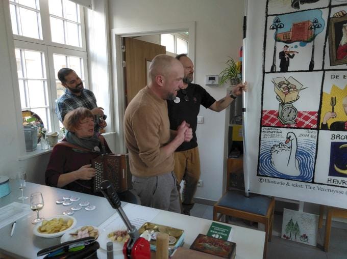Buurtcomité De Meersen 8000 organiseerde zijn nieuwjaarsdrink in het Huis met de vele Kamers in de Oostmeers. Voorzitter Bram Noë mocht 125 buurtbewoners verwelkomen. Bij aankomst kreeg iedereen een badge opgespeld met daarop de naam van hun straat, gemaakt door Tine Vercruysse. Het ging om bewoners van de Oost- en Westmeers, de verbindingsstraten en de Goezeputstraat, samen goed voor negen straten. De aanwezigen werden verwend met drankjes en hapjes. In zijn toespraak benadrukte de voorzitter het belang van het Buurtcomité als verbindende kracht in de wijk. Daarna rolde hij het vaandel van de Meersenbuurt open, met daarop tekeningen en de tekst van het lied van de Meersenbuurt. Het lied werd enthousiast door iedereen meegezongen. (SR/gf)