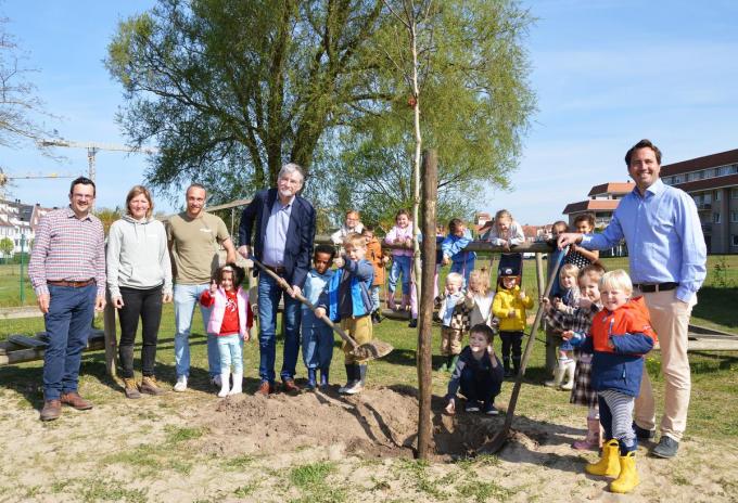 De aanplant werd dinsdag, de eerste schooldag na de paasvakantie, afgerond met het symbolische sluitstuk aangeplant door burgemeester Wilfried Vandaele en schepen van Jeugd Mathieu Delbarge.