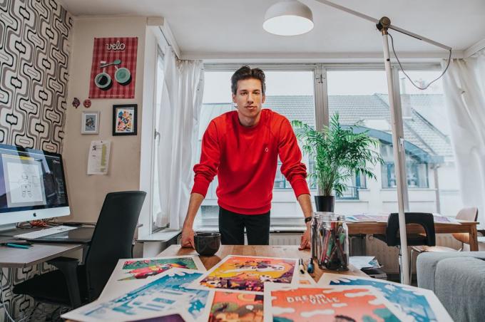 “Ik startte als zelfstandige via Smarts, een platform voor mensen uit de creatieve sector waar je zonder al te grote risico’s je ding kon doen”, zei Robin destijds. “Mijn eerste opdrachten kreeg ik van het grafisch kantoor Eugene &Louise. Iets meer dan drie jaar geleden begon ik een eigen project: ‘Rhymezlikedimez’. De naam komt uit een nummer van de Amerikaanse cultrapper en hiphop-icoon MF Doom met de flard tekst ‘I sell rhymes like dimes’, wat betekent dat hij dealt in verzen of rhymes. Doom geeft zo zijn muziek een visuele metafoor en die vlag dekt ook mijn lading.”