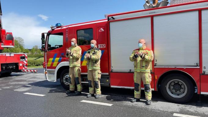 Het brandweerkorps van Zone1 post Brugge trok dinsdagmiddag rond 14 uur naar het AZ Sint-Jan. Met sirenes en applaus wilden ze het verplegend personeel hun steun betuigen voor de door hen geleverde inspanningen.