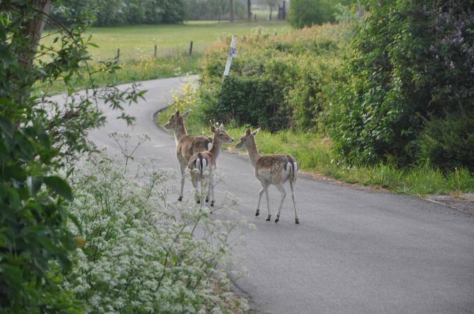 Langs de Vaartdijk in Pollinkhove braken maandagavond drie damherten uit. Het waren toevallige passanten die de dieren opmerkten.